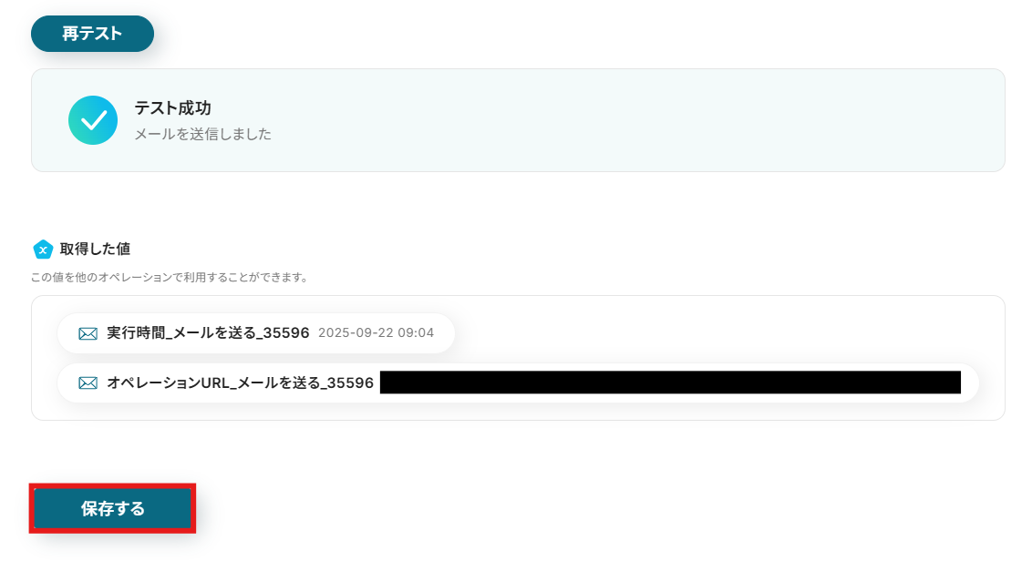 設定が完了したらテストボタンをクリックしてください。