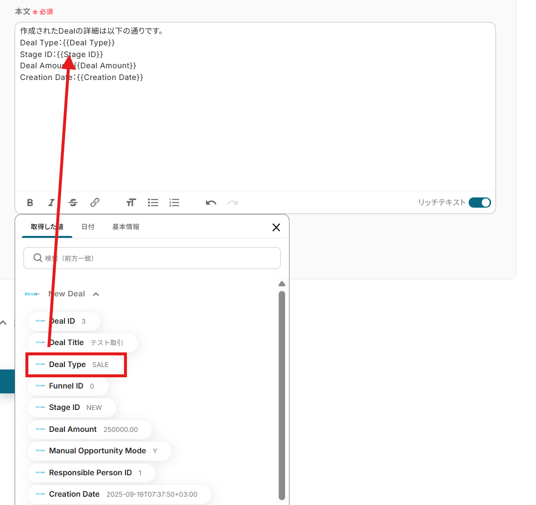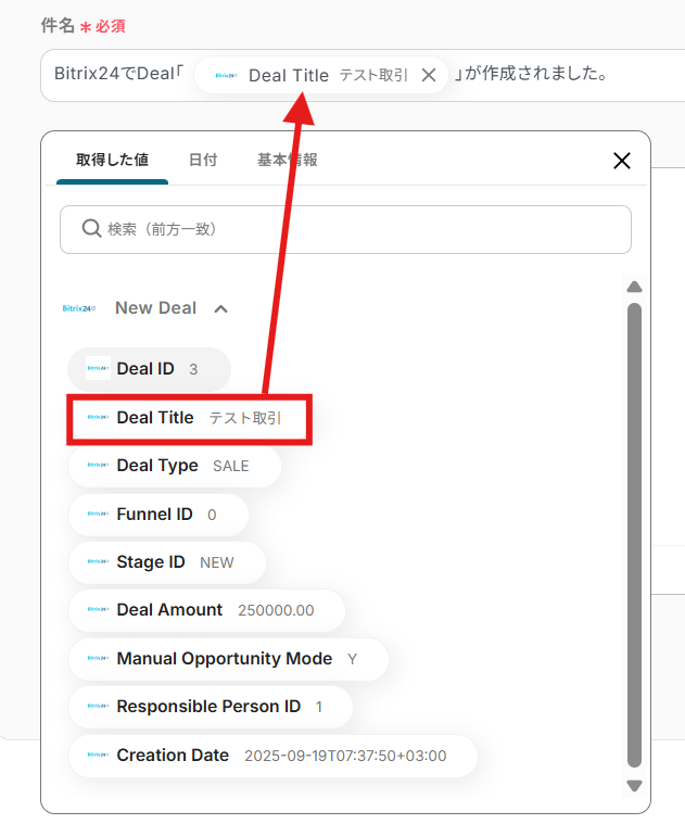 次の設定を行う前にBitrix24にて、Dealを作成しておきましょう。