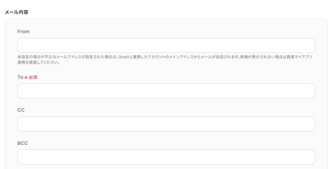 - From,To,CC,BCC:ご利用にあわせて設定してください。