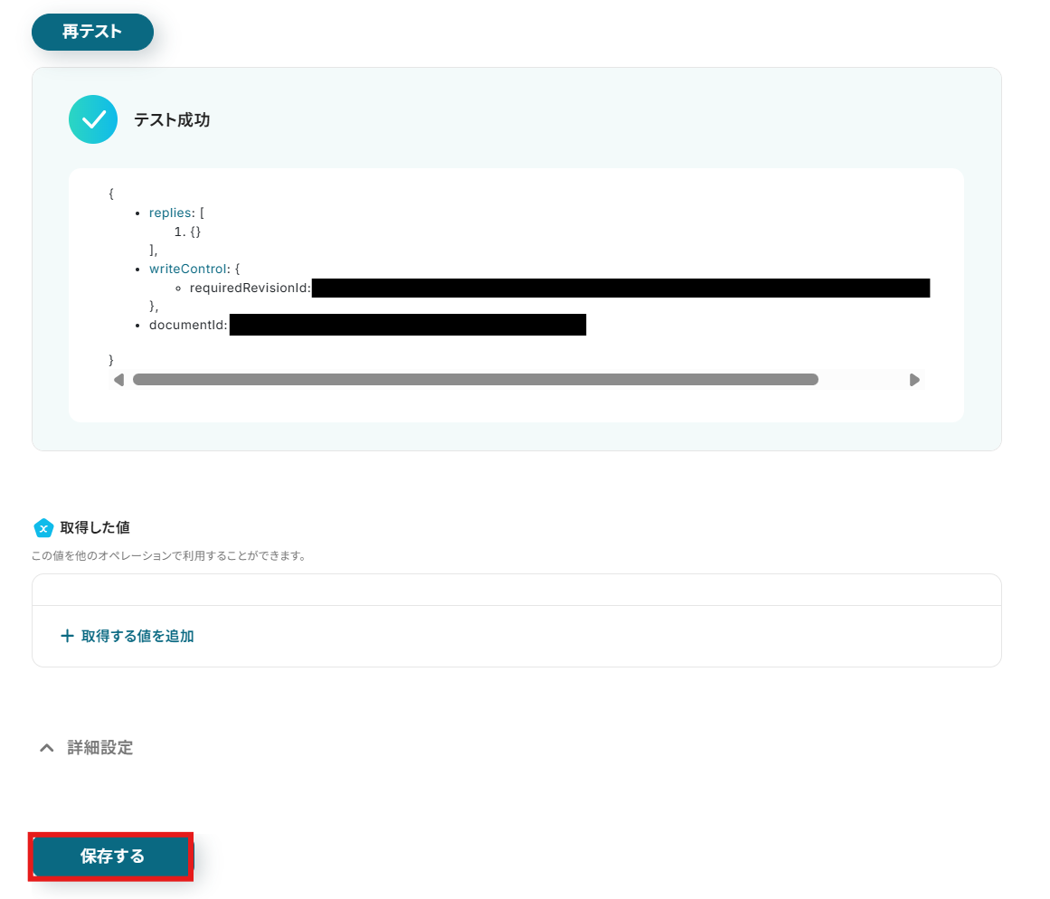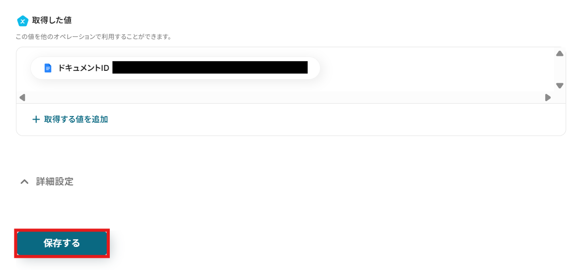 保存するボタンをクリックし、Googleドキュメントへのテキスト追加設定を完了させてください。
