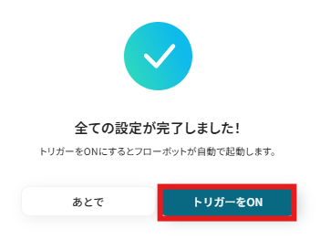以下の画面が表示されるので、「トリガーをON」をクリックしたら、自動化の設定は完了となります。