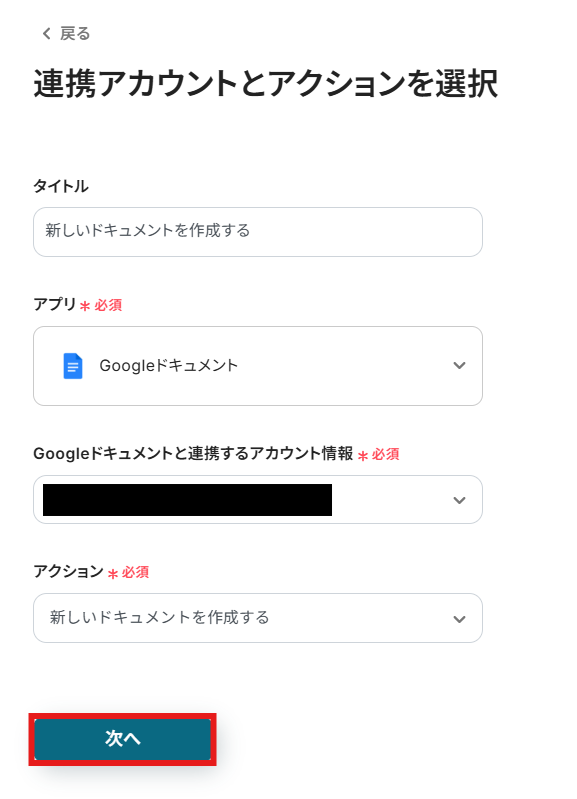 ステップ4:Googleドキュメントの新規作成設定