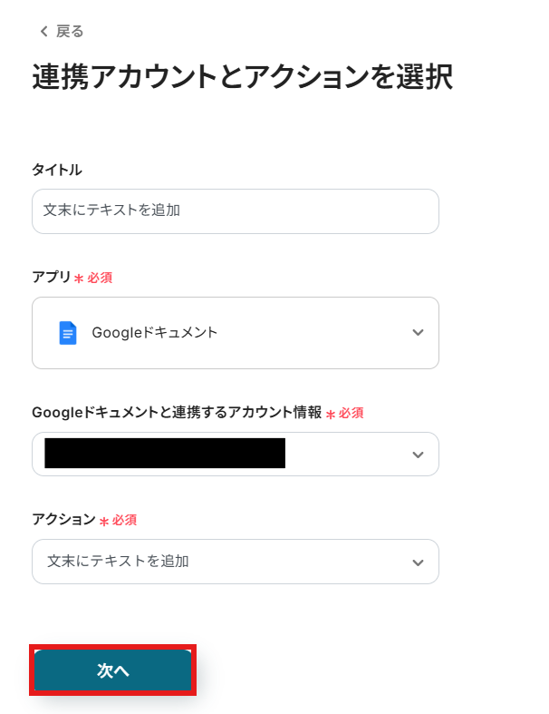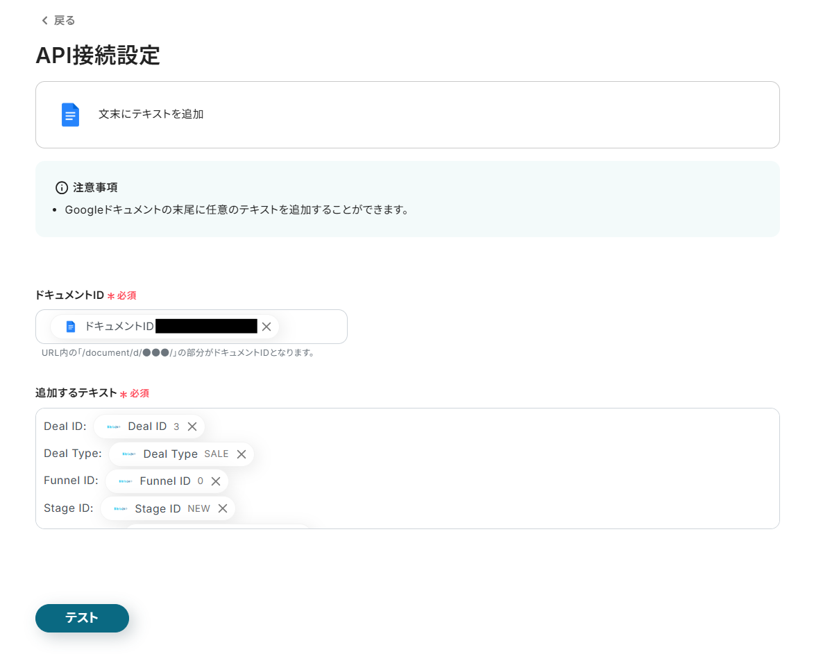 ステップ5:Googleドキュメントへのテキスト追加設定