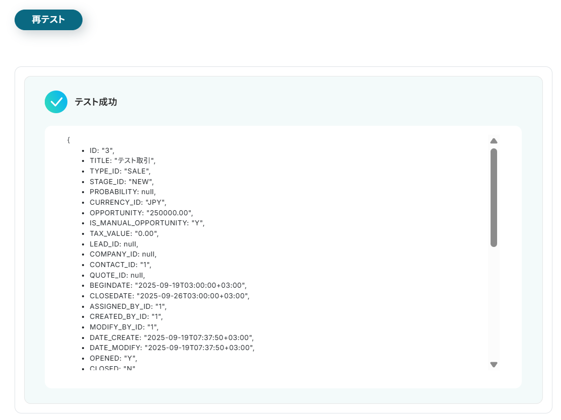 次の設定を行う前にBitrix24にて、Dealを作成しておきましょう。