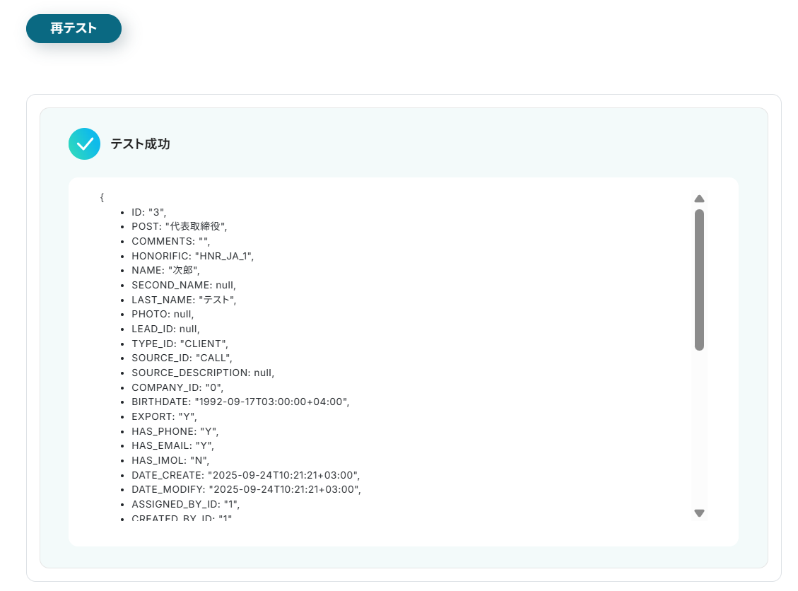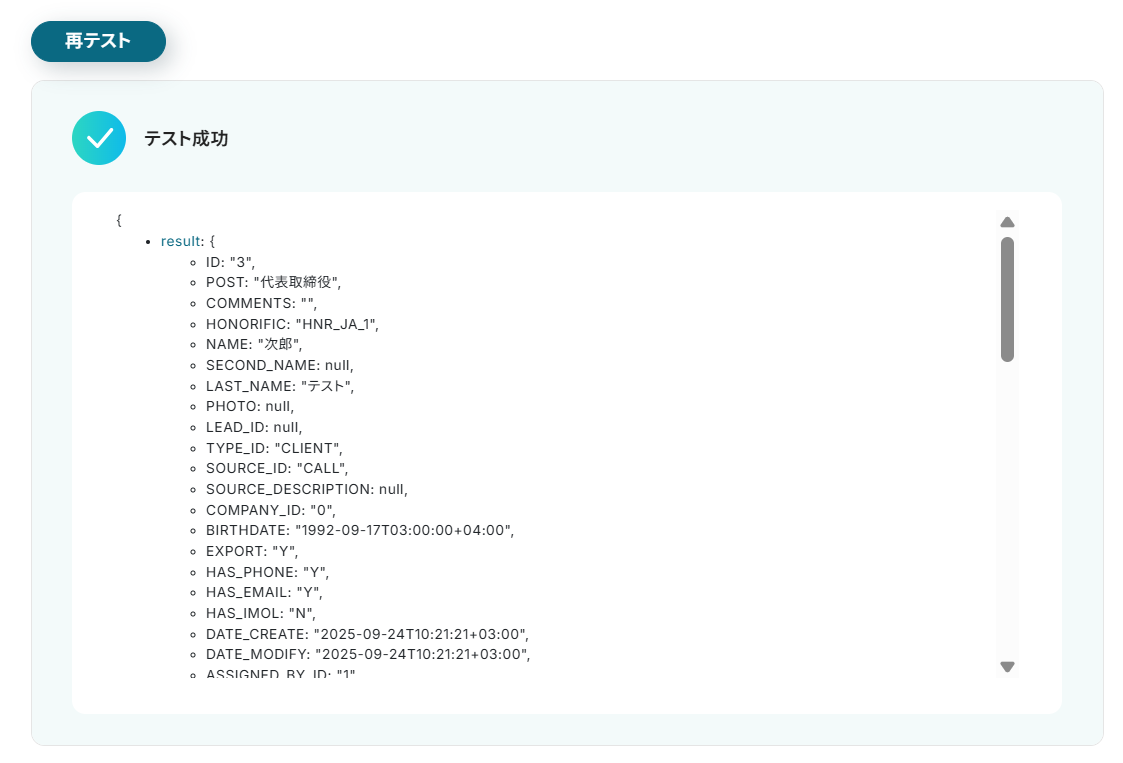 次にBitrix24で作成したContactの取得を行います。
