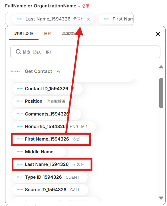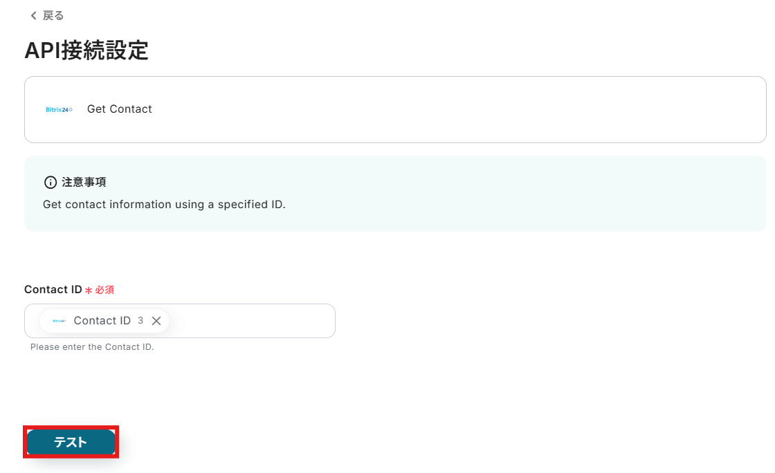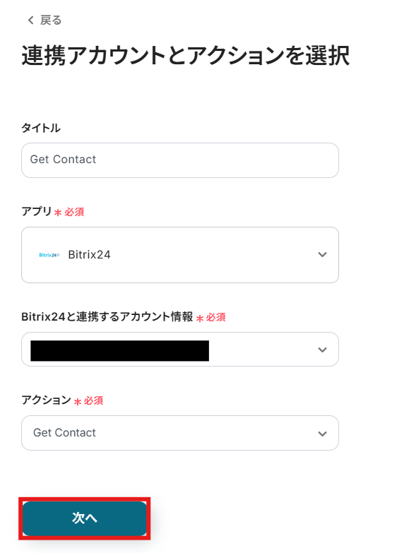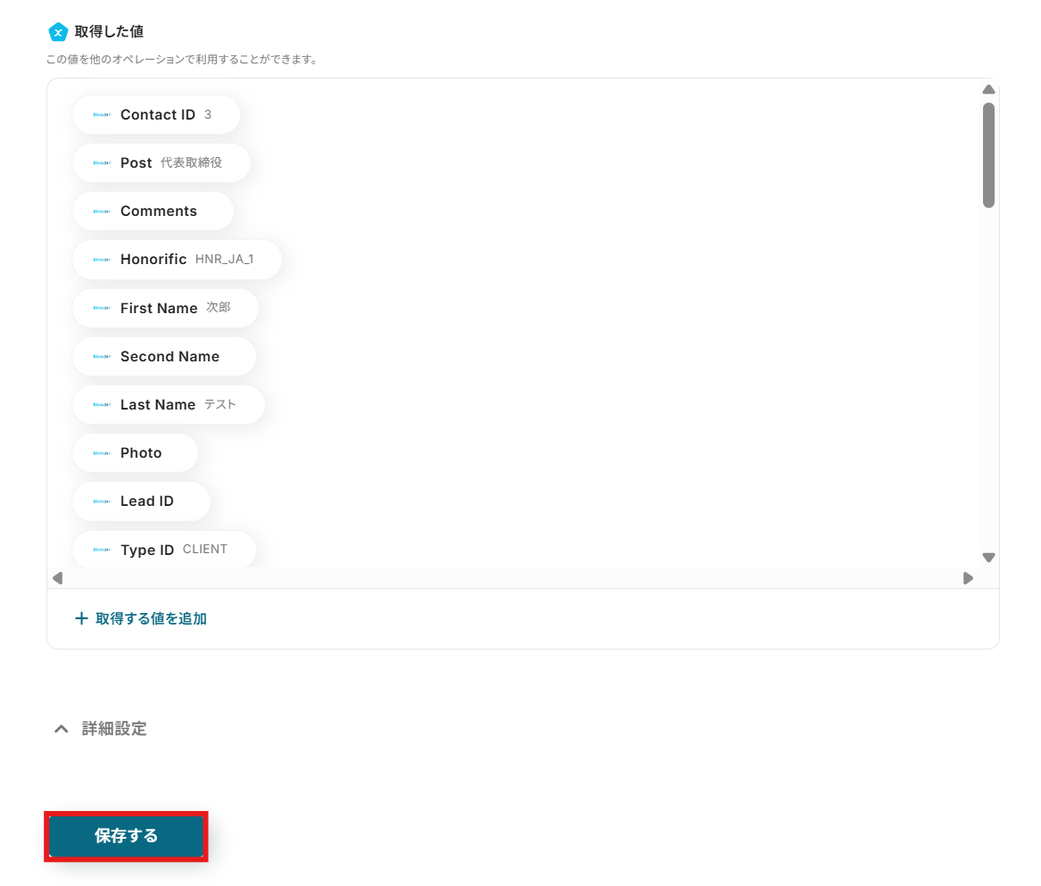 ステップ4:Bitrix24のコンタクトの詳細を取得する設定