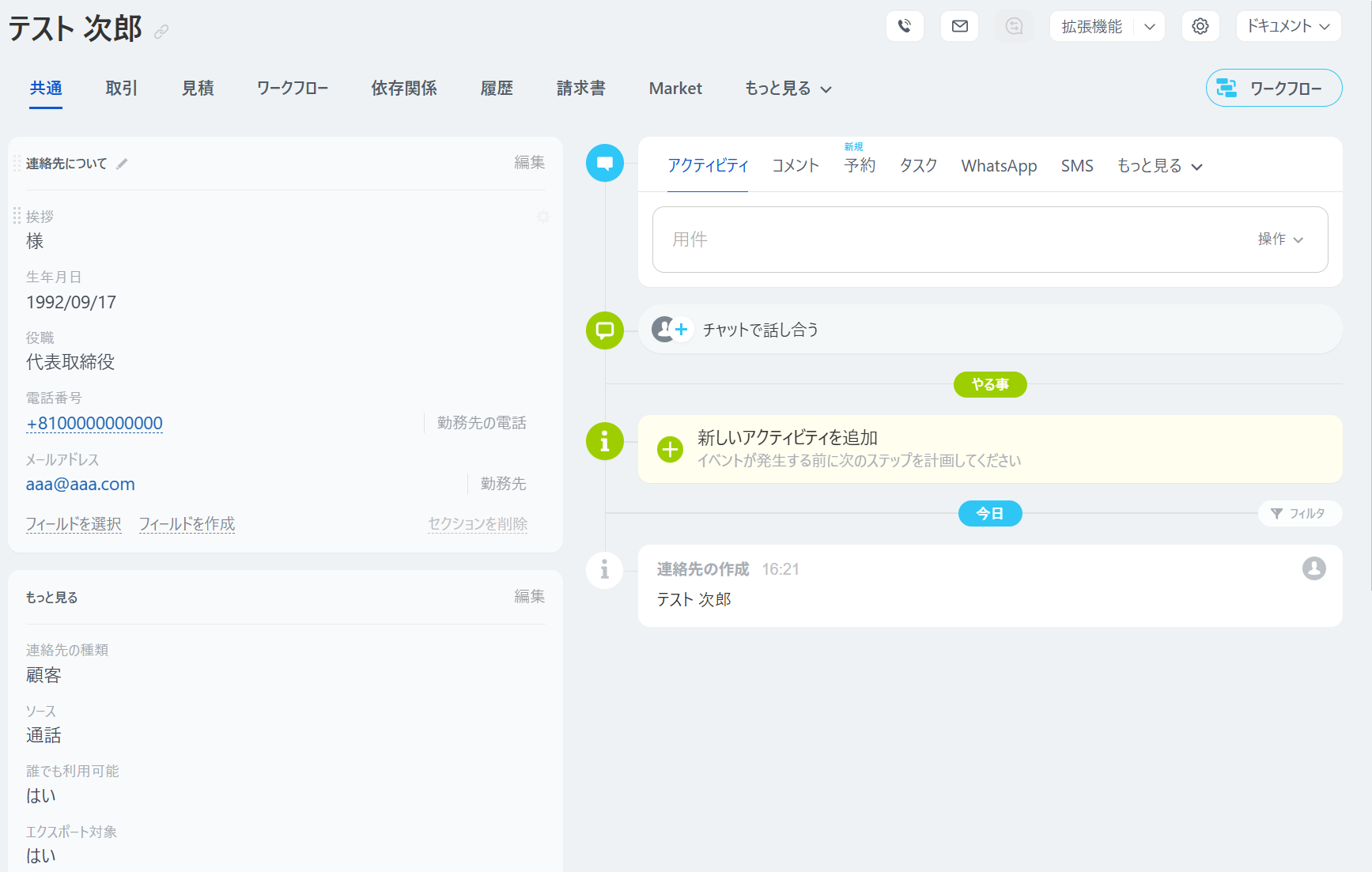 次の設定を行う前にBitrix24にて、Contactを作成しておきましょう。