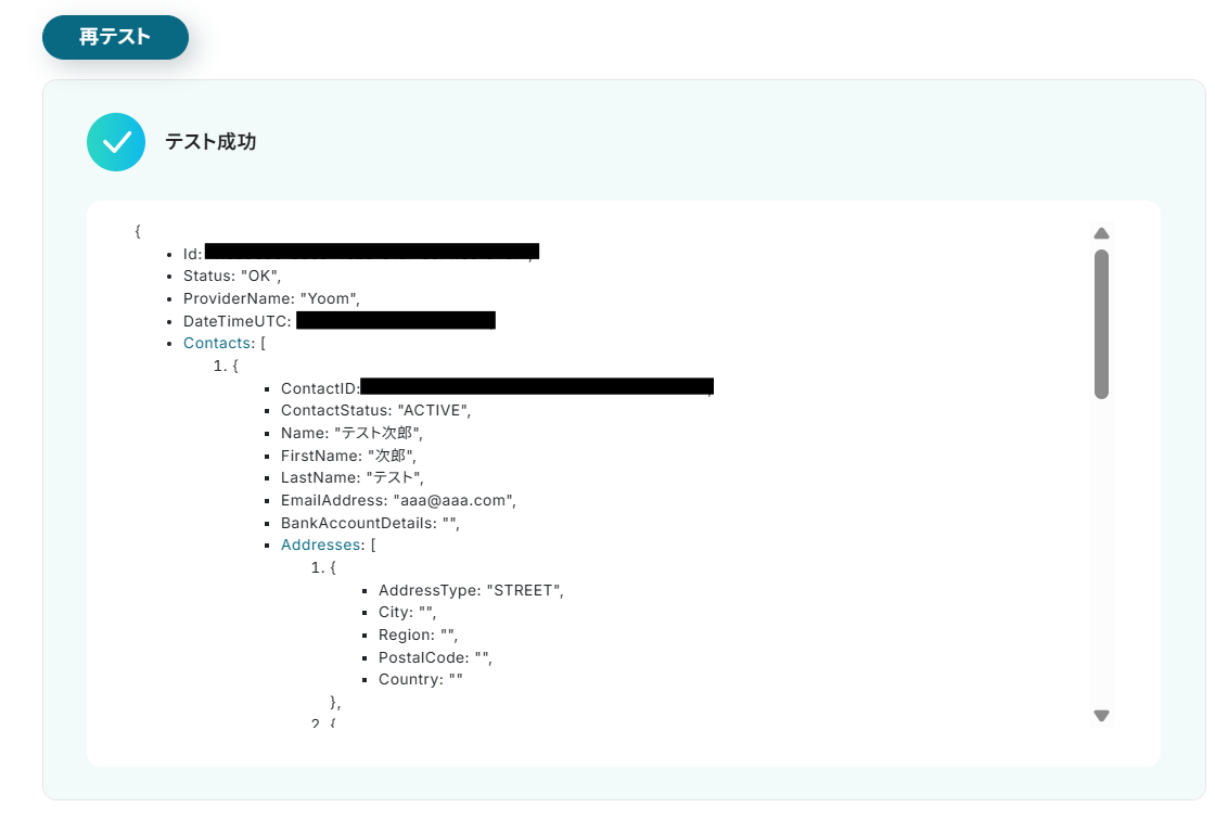 設定が完了したら、テストボタンをクリックしてください。