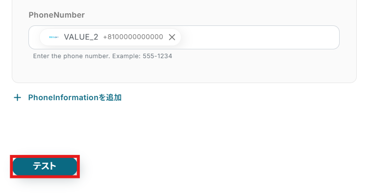 設定が完了したらテストボタンをクリックしましょう。