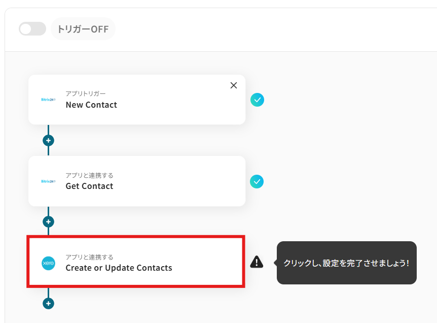 Bitrix24に新しいコンタクト(連絡先)が追加された際に、その情報をトリガーとしてXeroにも同じコンタクト情報を自動で作成する連携です。