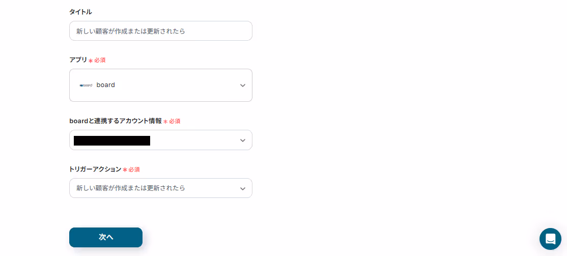 boardの画面を開き、テスト用の新規顧客を作成してください。(架空の設定でOKです!)