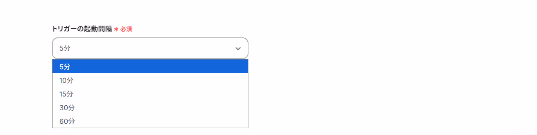 トリガーの起動タイミングは、5分、10分、15分、30分、60分のいずれかで設定できます。