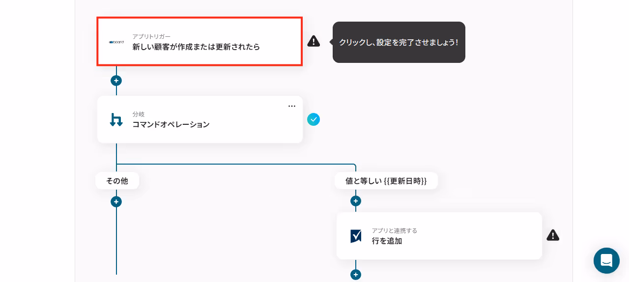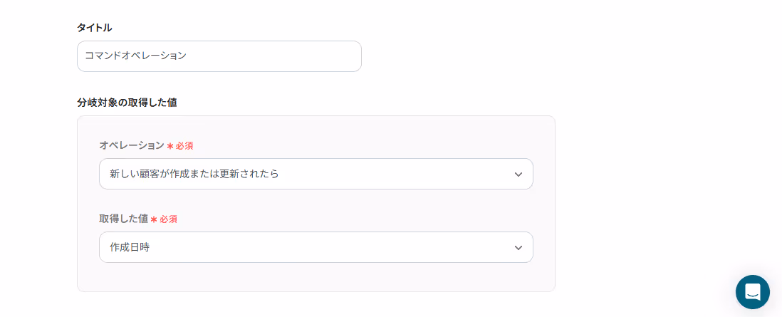 オペレーションは「新しい顧客が作成または更新されたら」、取得した値は「作成日時」になっていることを確認しましょう。