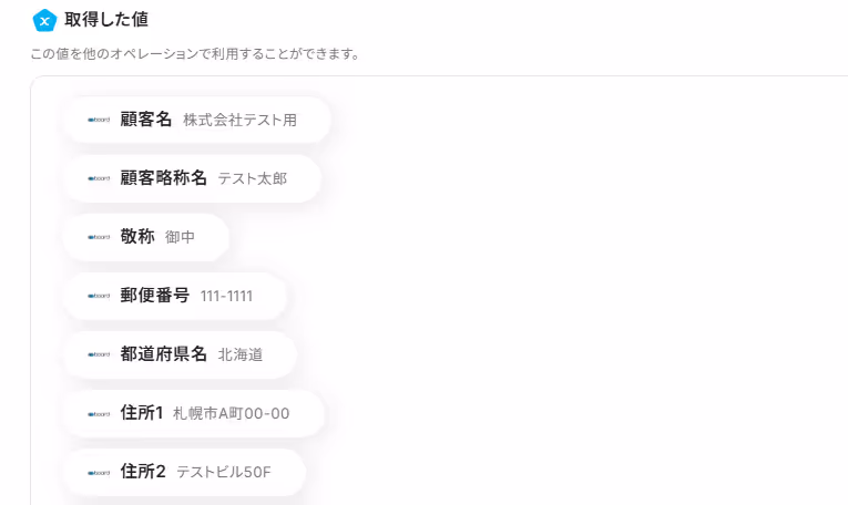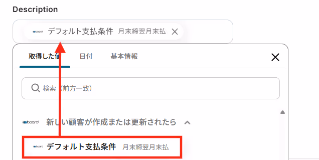 Nameには、以下のようにboardから取得した値から「顧客名」を選択します。