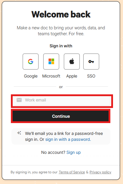 Codaにサインインしましょう。