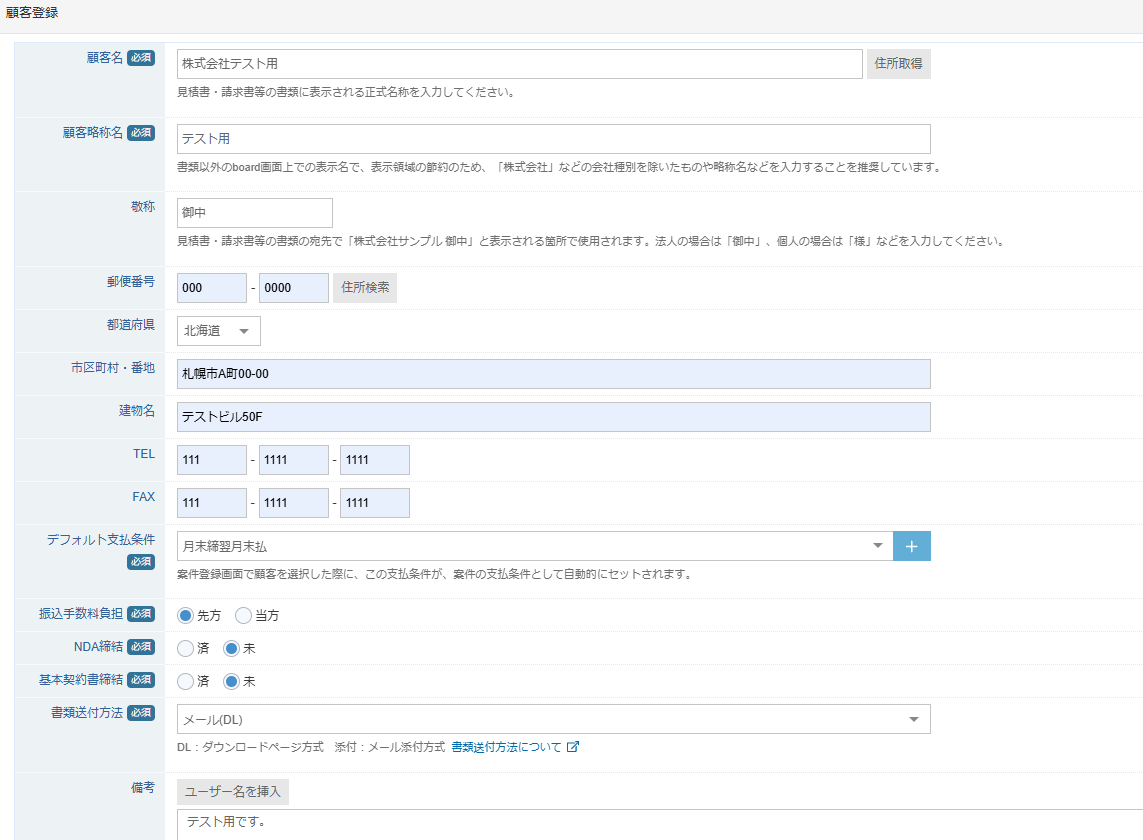 テスト用にboardで新しく顧客登録を行いましょう。