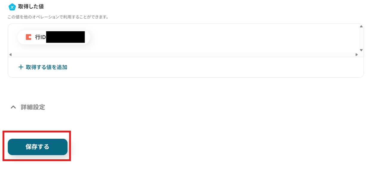 「取得した値」(アウトプット)について、詳しくはこちらをご覧ください。