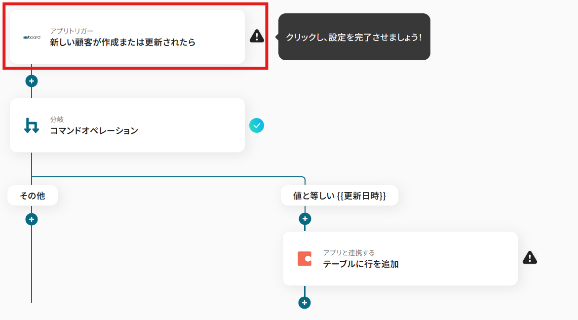 今回は「boardで顧客が作成されたら、Codaに行を追加する」フローを作成していきます!