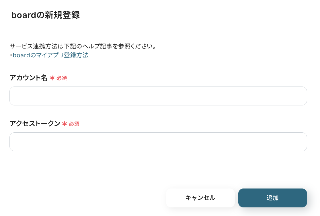 boardの新規登録画面が表示されるので下記のように入力し、「追加」を押したら連携完了です!