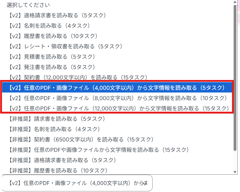 ・OCRまたは音声を文字起こしするAIオペレーションはチームプラン・サクセスプランでのみご利用いただける機能となっております。フリープラン・ミニプランの場合は設定しているフローボットのオペレーションはエラーとなりますので、ご注意ください。