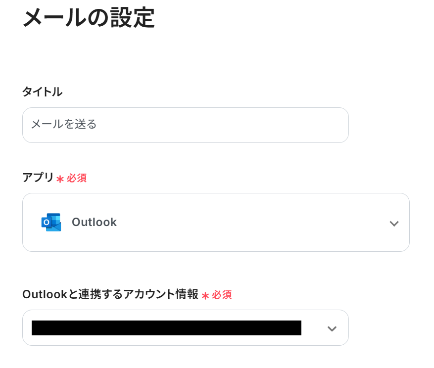 ※テキストを直接入力した部分は固定値となります。全て手入力をしてしまうと、同じメッセージが重複してOutlookに通知されてしまいます。IDなど変化する部分は、取得した値を引用して設定するようにしてくださいね。