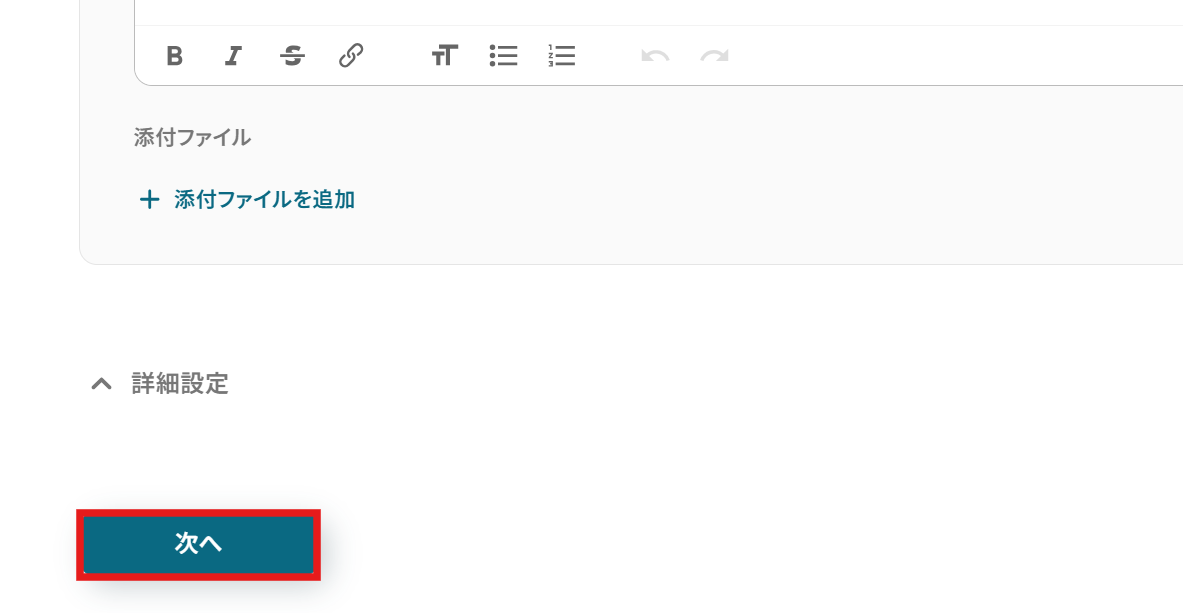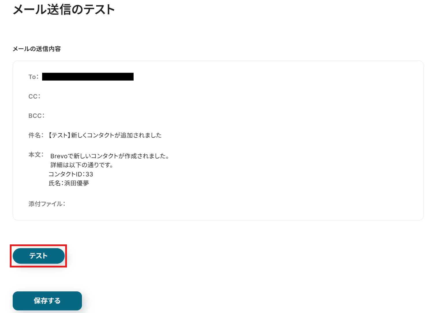 To:送信したい相手のメールアドレスを入力します。テストの際には実際にメールが送信されてしまうため、テストしても問題のないメールアドレスを設定しておきましょう。