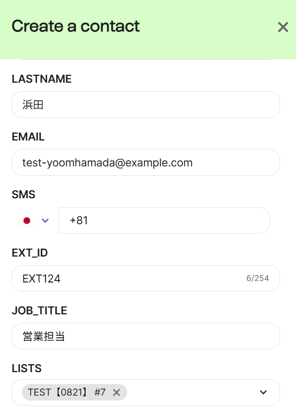 設定が終わったらテストのため、Brevoの画面でコンタクトを作成しましょう!