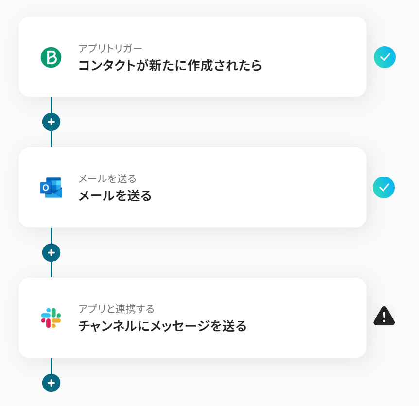 条件分岐の処理を含むため、本当に重要なコンタクト情報だけを絞り込んで、必要な担当者にのみ通知することが可能に。不要な通知による混乱を防ぎ、対応の優先順位付けを効率化します。