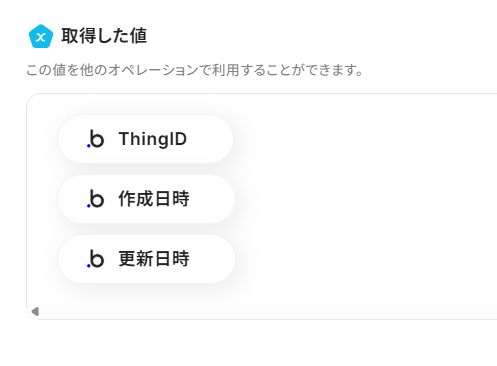 取得した値は、後続のオペレーション設定時の値としてご利用いただくことができ、フローボットを起動する度に、変動した値となります。