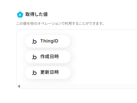 取得した値は、後続のオペレーション設定時の値としてご利用いただくことができ、フローボットを起動する度に、変動した値となります。