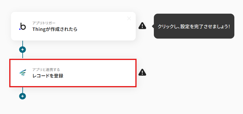 1.アプリと連携する「レコードを登録」をクリックしましょう。