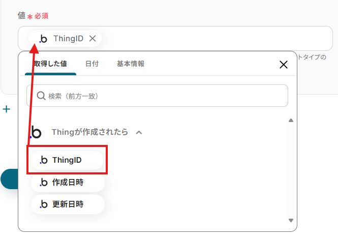 「アプリID」「データベースID」は、入力欄をクリックして表示される候補から選択してください。