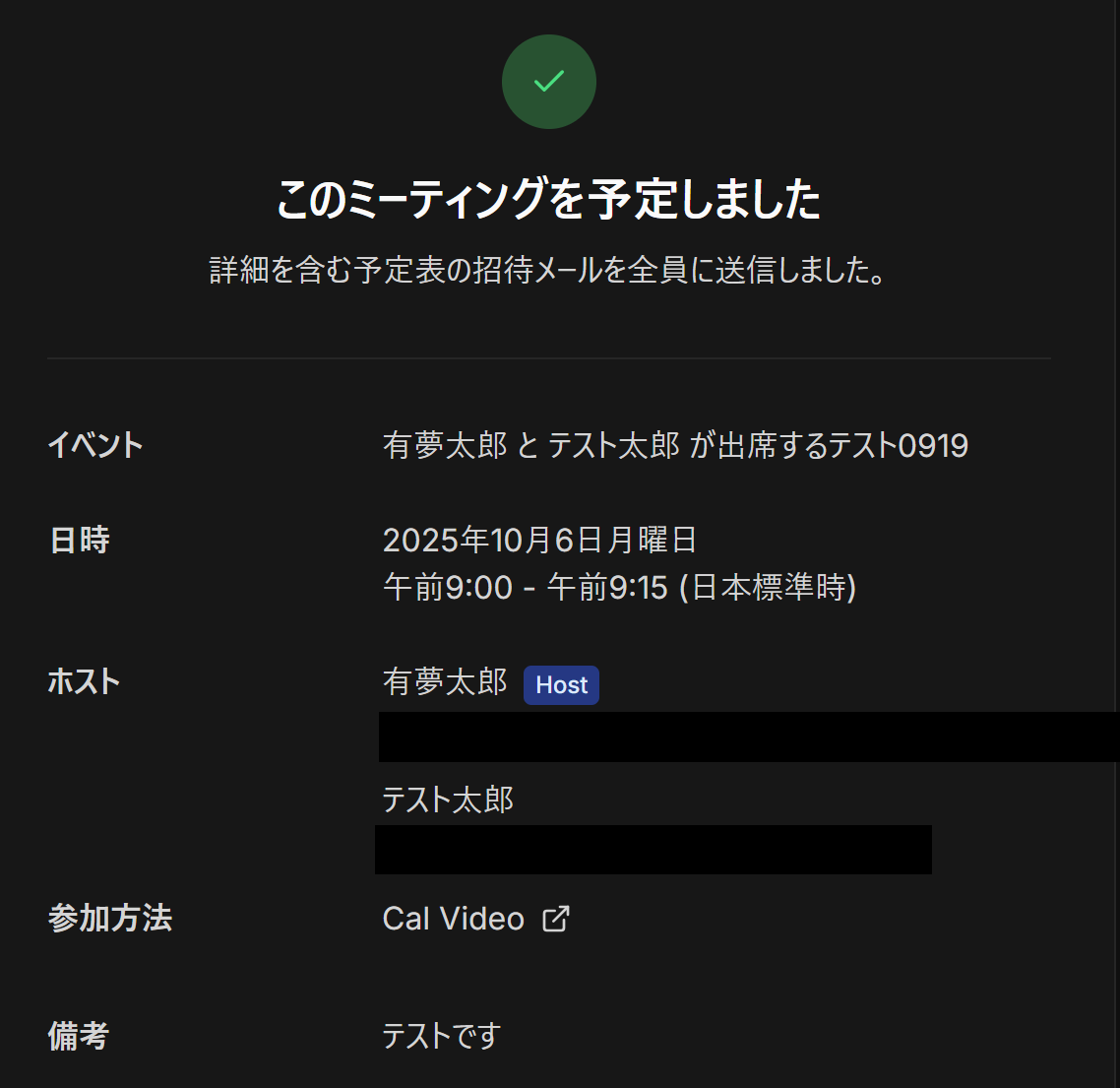 ここでテスト用に、トリガーイベントとなる予定をCal.comに登録します。