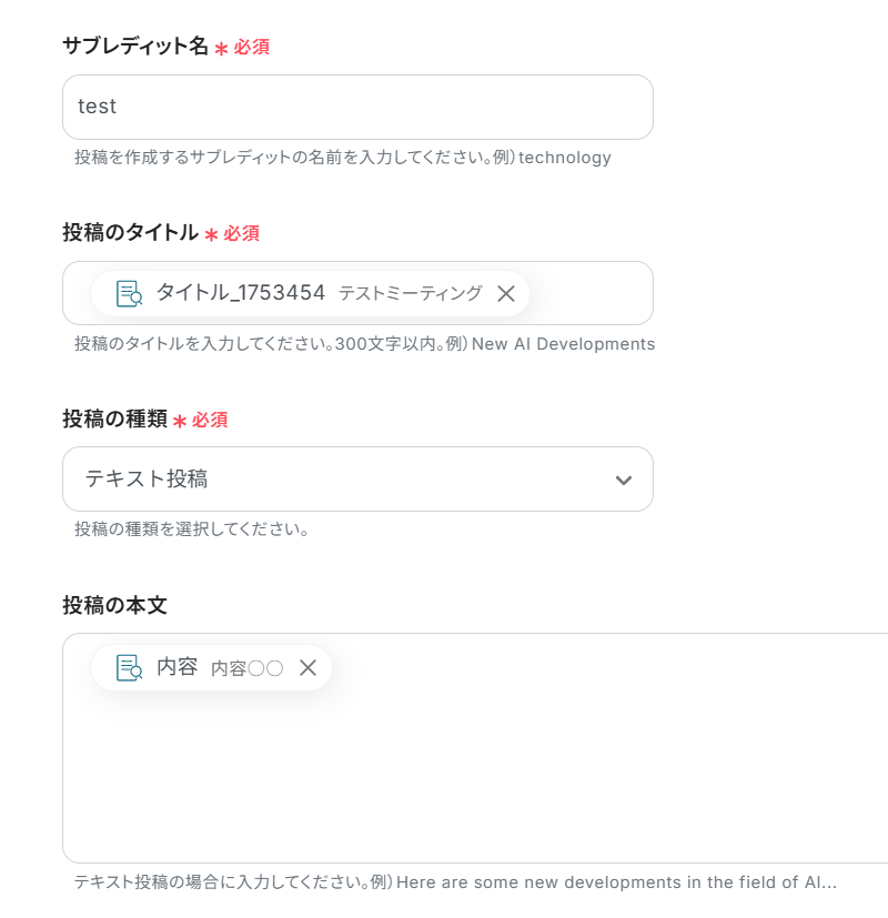 この分岐処理を含む連携を活用することで、内部的なミーティングは除外し、コミュニティに共有すべき重要な情報だけをフィルタリングして自動投稿できるため、より戦略的で効率的なコミュニティ運営が可能になります。