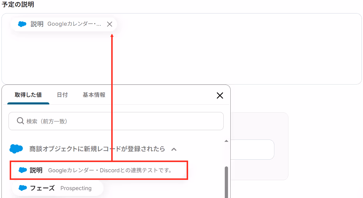 今回は例として、この商談情報をもとにGoogleカレンダーに予定を作成し、Discordで送信するという想定で進めていきます。