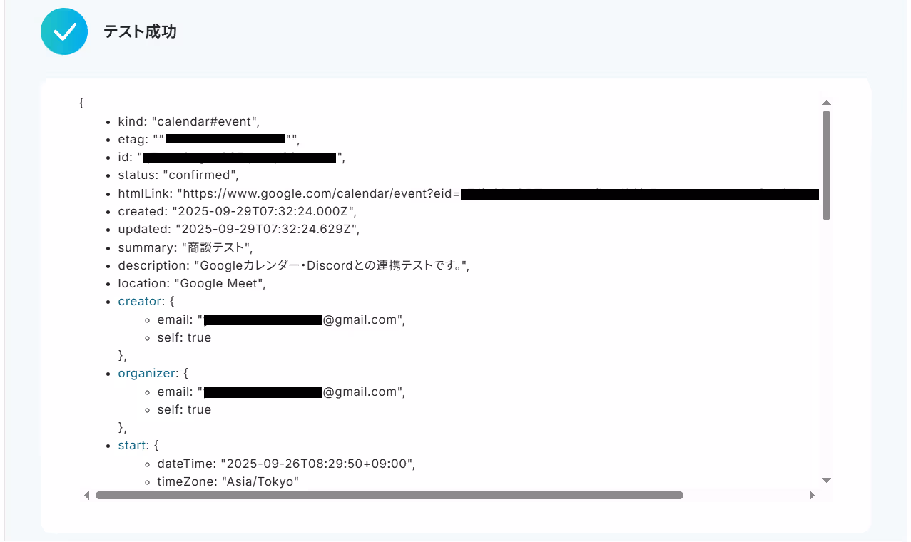 先ほど作成されたGoogleカレンダーの予定情報をDiscordで送信します。