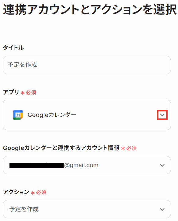 ステップ3と同様、アクションは「予定を作成」のまま「次へ」をクリック。