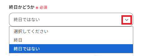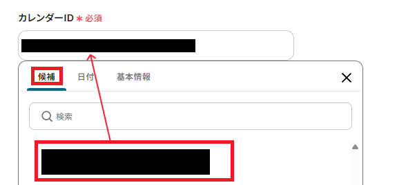 日付の中から任意で選択してください。取得した値から予定の開始日時を設定することも可能です。
