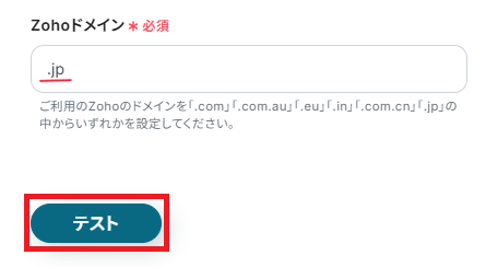 「Zohoドメイン」は、ステップ4で入力したものと同様の設定をしてください。