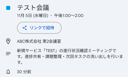 実際にGoogleカレンダーで予定を作成しておきましょう。