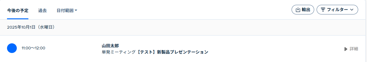 作成する予定は、架空の情報(「テスト会議」や「テストミーティング」など)でOKです。