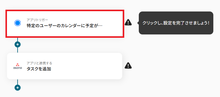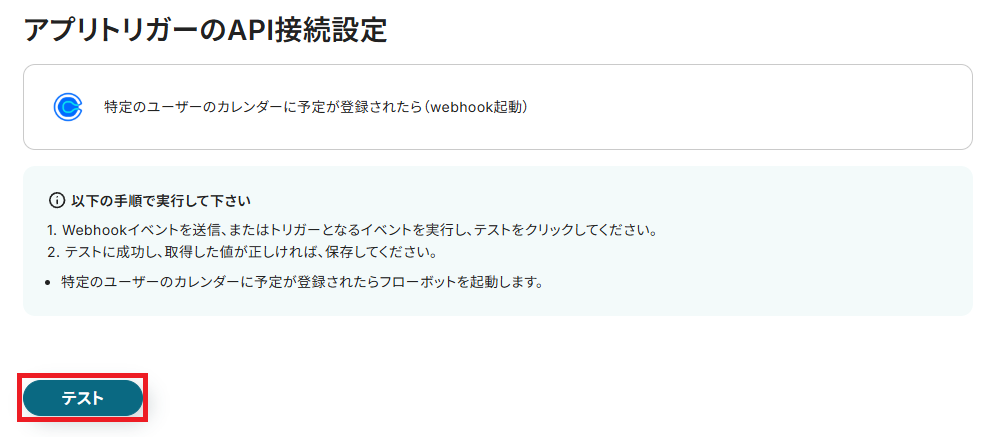 まず、「特定のユーザーのカレンダーに予定が登録されたら(webhook起動)」をクリックしてください。