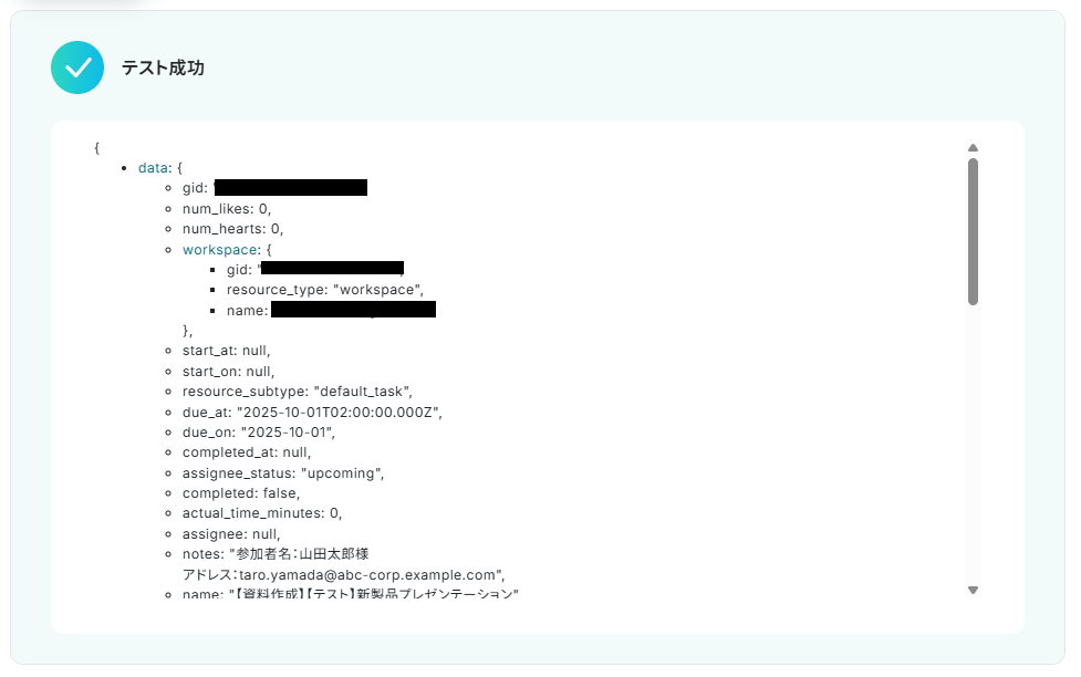 また、実際Asanaにタスクが追加されるので、確認してみましょう。
