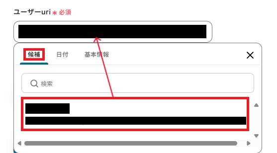 「ユーザーuri」も同様に、候補から選択してください。