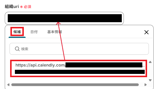 「組織uri」は、入力欄をクリックして表示される候補から選択してください。