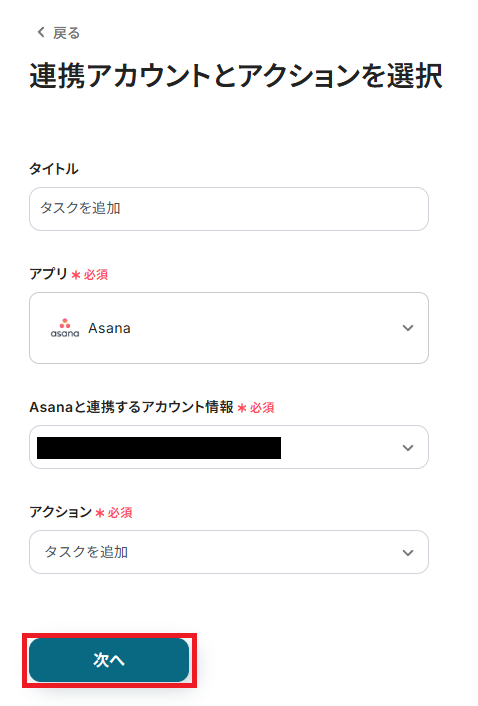 ステップ4:Asanaのアクション設定