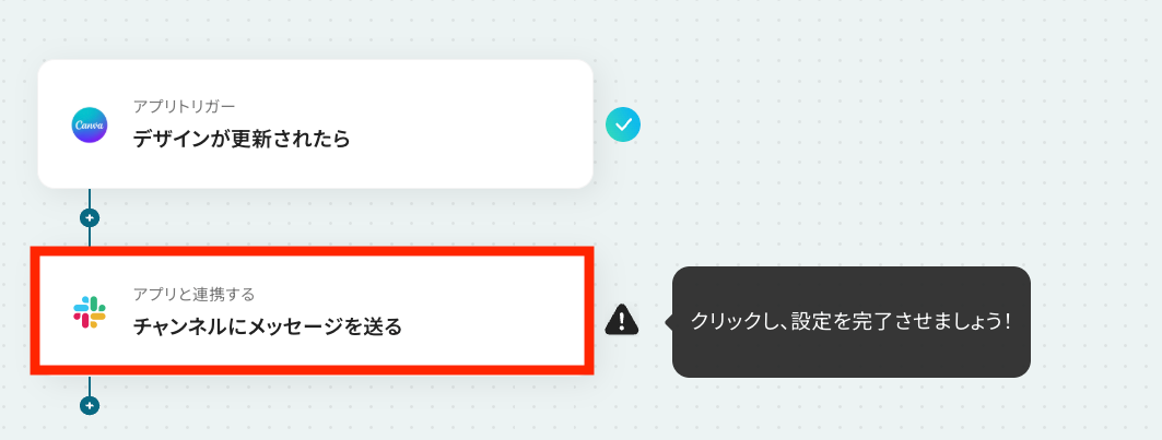 はじめに、CanvaとSlackをYoomと連携します。 次に、トリガーでCanvaを選択し、「デザインが更新されたら」というアクションを設定します。 最後に、オペレーションでSlackの「チャンネルにメッセージを送る」アクションを設定し、通知したい内容を組み立てます。 ※「トリガー」:フロー起動のきっかけとなるアクション、「オペレーション」:トリガー起動後、フロー内で処理を行うアクション■このワークフローのカスタムポイント