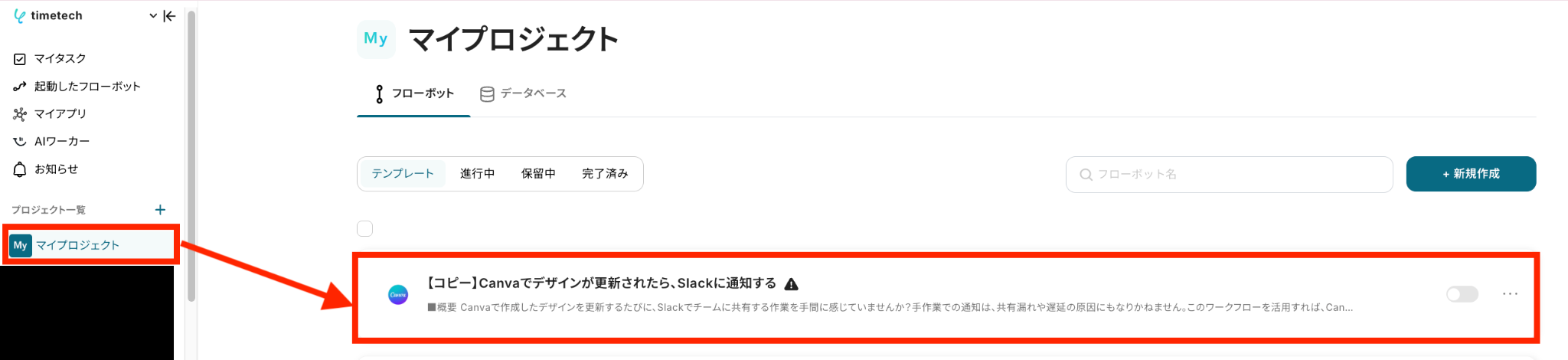 テンプレートが「マイプロジェクト」にコピーされると、このような画面が表示されます。