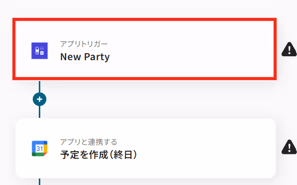 次に、トリガー設定のテストを行いますので、テストで使用するParty(顧客情報)を追加しておきましょう。