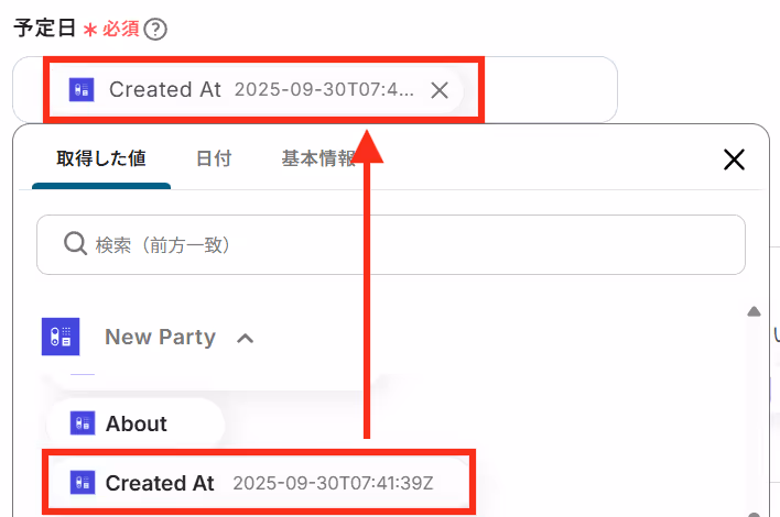 予定の説明も同様に、取得した値から任意の項目を選択します。